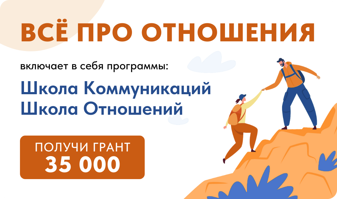 Чтобы получить грант на обучение сразу в двух школах: в Школе Отношений и Школе Коммуникаций, заполните заявку и ответьте на несколько вопросов